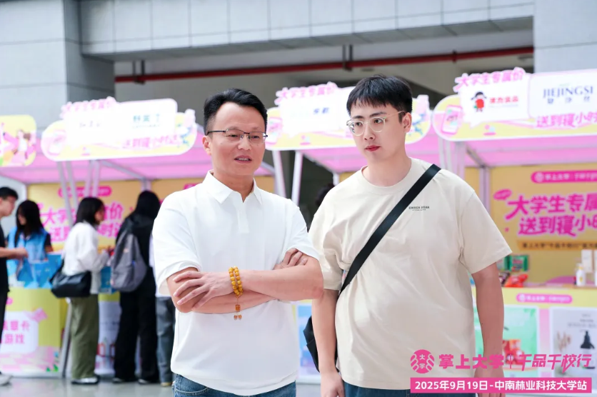 為精準(zhǔn)把握年輕消費(fèi)群體核心訴求,助力品牌年輕化產(chǎn)品布局與校園市場(chǎng)拓展,2025 年 9 月 19 日,九喜股份總經(jīng)理田總帶領(lǐng)團(tuán)隊(duì)成員,赴中南林業(yè)科技大學(xué)實(shí)地調(diào)研掌上大學(xué)校園展會(huì)路演活動(dòng),通過沉浸式觀察、面對(duì)面交流,深入了解當(dāng)代大學(xué)生消費(fèi)偏好與市場(chǎng)趨勢(shì)。